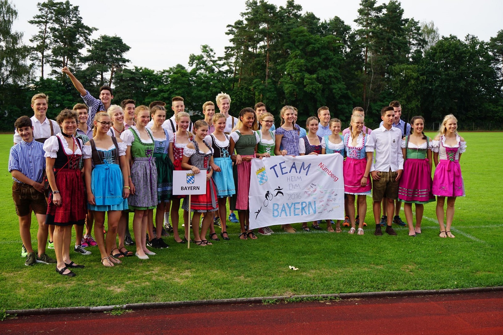 Letztes Wochenende war es endlich so weit und der Saisonhöhepunkt, die Deutschen Meisterschaften der Jugend und Junioren in Nürnberg standen an. Eine Woche zuvor bestritt ich noch aus dem Training heraus unser Heimrennen, den Triathlon in Grassau, und konnte mit großem Vorsprung dort gewinnen und meine selbst gesteckten Ziele auch im Hinblick auf Schwimm- Rad- und Laufpace erreichen. Die letzten wenigen Trainingseinheiten in der Rennwoche liefen ebenfallsnach Plan und ich reiste am Donnerstag Nachmittag zuversichtlich nach Nürnberg, wo ich eine Nacht bei meiner Tante und meinem Onkel in Schwabach verweilte (Danke dafür :) ) bevor es am Tag darauf ins Hotel ging, wo ich die anderen Athleten aus Bayern traf. Anschließend wurden noch die Strecken besichtigt und abends stand die Länderparade an, bei der es seit 2013 Tradition ist, als Bayerischer Athlet in Tracht aufzutreten.